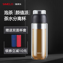 德国SIMELO 施美乐 玻璃杯茶水分离杯女双层玻璃水杯男316保温杯茶杯带过滤网泡茶杯便携车载杯 宁静黑330ML(双层高硼硅玻璃,耐热防爆