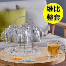 红铁普 家用带把玻璃杯玻璃水杯茶杯喝水杯子套装耐热啤酒杯果汁杯 6个维比强化把杯+杯架+沥水盘 一套