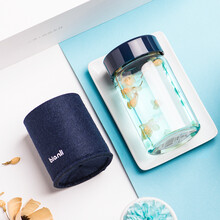 bianli鲤集女士玻璃水杯单层便携小巧可爱创意潮流个性防烫防摔学生办公居家简约清新花茶杯子 深蓝色200ML