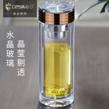 格亚双层玻璃水杯男士办公商务泡茶杯 带过滤高档商务水晶杯 车载便携杯子 支持团购定制 JAB 金色 400ml