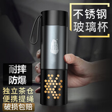 自然石 防摔玻璃杯男过滤泡茶杯车载水杯茶水分离双层防摔防烫水杯不锈钢玻璃水杯子400ml 绅士黑400ml