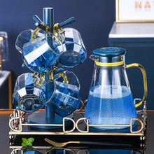 启派 北欧ins轻奢玻璃杯套装家庭喝水杯一套玻璃水壶耐高温加厚花茶杯办公杯杯具创意啤酒杯威士忌酒杯子 轻奢玻璃杯套装带托盘【402】