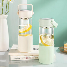 蓝致 玻璃水杯泡茶杯女便携防烫手可爱耐热泡茶耐热玻璃杯大容量杯子泡花茶水分离茶杯 抹茶绿【480ml】带手提