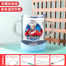 DEVAR奥特曼儿童玻璃水杯吸管杯宝宝家用可微波炉加热牛奶杯髙硼硅玻璃手把水杯 泰罗双把款奥特曼(250毫升)