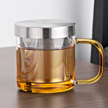 尚明(SAMADOYO) 耐热玻璃杯茶杯过滤花茶女士玻璃水杯带盖玻璃杯可加热办公个人茶杯 350ML金色手把