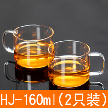 虎匠 耐热玻璃小杯 品茗杯160毫升 小号茶杯 透明玻璃水杯 花草茶具带把小杯 两只装