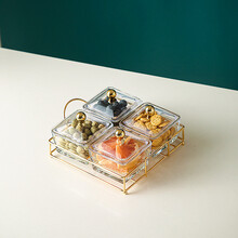 古艾GUAI 北欧轻奢带盖干果盘玻璃水果盘分隔客厅干果盒家用零食点心小吃盘 四格(玻璃)带盖