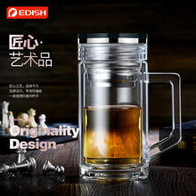 壹滴水(edish) 双层耐热玻璃杯 水晶茶杯玻璃水杯 商务礼品水杯子 办公杯350ML