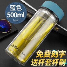 富光玻璃杯时尚男女士商务车载双层耐热防烫便携玻璃水杯泡茶杯厚底带茶隔透明水杯子可企业定制印字LOGO 500ml蓝色