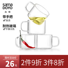 尚明(samadoyo)加厚耐热玻璃功夫茶杯白酒杯品茗喝茶小杯子茶具杯带把透明玻璃水杯子家用 单杯容量150ML:2只装