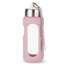居元素 玻璃水杯带刻度挂绳密封防漏运动杯 雅韵 经典版玫瑰粉(有刻度金属链)