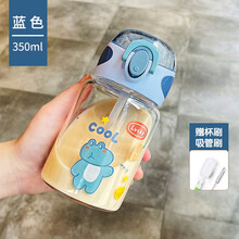 特百惠同款高颜值玻璃水杯女带吸管便携夏季泡茶杯大容量儿童学生杯子ins风礼品礼物送人 蓝色恐龙350ML-送杯刷+吸管刷