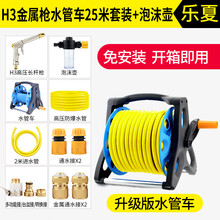 高压洗车水枪家用浇花软管喷水枪神器汽车收纳工具套装水管收纳架 H3长杆枪25米圆管套装 水管车 泡沫壶