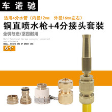 直喷铜高压铜3/4/6分家用洗车刷车喷头洗车器汽车压力清洗水枪头 M1铜直喷水枪+4分铜通水接头套装(6件)