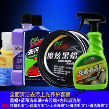 汽车蜡黑色车专用除划痕修复养腊打蜡上光去污蜡水蓝柠黑蜡 套餐8:魔炫黑蜡+洗车液+去污蜡+丝绒内饰清洁剂