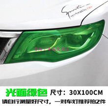 汽车灯膜大灯改色膜变色贴纸尾灯透光膜熏黑磨砂亚光贴膜汽车用品 光面绿30CM宽 不加美工刀和刮板