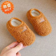 VSEKℂℂ℘ 品牌0-12岁小孩子穿的宝宝家居鞋儿童棉拖鞋包跟女小孩婴幼儿室内毛毛棉鞋男防滑1-3 DAQ棕色 29码/内长16cm
