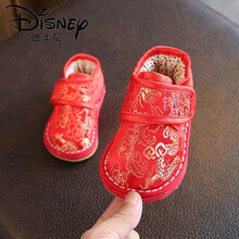 迪士尼(Disney)宝宝棉鞋1一2周岁婴儿手工1-3岁2新年过年一周岁拜年鞋唐装红色鞋子冬季女 101红色 12码/内长11.5cm