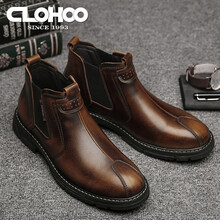 CLOHOO 马丁靴男秋冬季新款男靴子男二层牛皮高帮户外工装英伦短靴加绒保暖雪地棉鞋子男休闲男鞋 棕色四季款 41