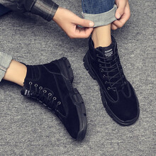 晋才 马丁靴男春季新款英伦工装靴韩版百搭高帮休闲鞋男士户外运动男靴子增高老爹潮鞋男加绒保暖棉鞋 黑色 44标准码