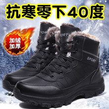 全洲狼 雪地靴男冬季男靴真皮东北大棉鞋大码抗寒防水加绒加棉加厚保暖棉鞋男高帮鞋轻便防滑耐磨棉靴子男 黑色棉鞋18111 41