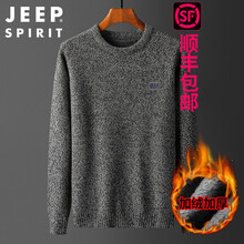 吉普JEEP毛衣男士保暖圆领针织衫2021春季新品韩版修身男休闲外套青年长袖打底衫上衣 0325加绒款深灰色 L