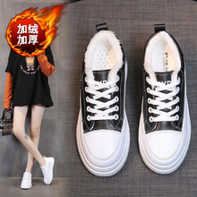 小牛犊 休闲鞋女鞋秋冬季加绒保暖新品小白鞋女板鞋网红棉鞋子女学生运动鞋女韩版潮厚底增高ins老爹鞋女 #猴赛雷&102-2 黑色加绒 37