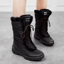 欧哒哒欧美户外雪地靴女防滑防水东北棉鞋女冬季运动中筒滑雪鞋加绒保暖登山鞋 520黑色 36