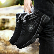 足力健老人鞋男鞋季加绒保暖爸爸鞋休闲鞋天棉鞋防水防滑老人雪地靴旅游鞋舒适悦舒锐九ABCYEEF 黑灰【加绒】 39