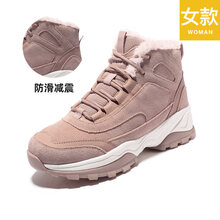 骆驼户外鞋女秋冬新款棉鞋休闲高帮防滑雪地靴加绒保暖登山鞋男鞋 ABA043036287,婴儿粉/米白,女款 35