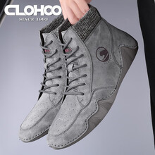 CLOHOO 休闲皮鞋男鞋子男秋冬季新款男士高帮商务真皮板鞋男加绒保暖棉鞋男百搭马丁靴潮流韩版皮鞋男 灰色-四季款 38