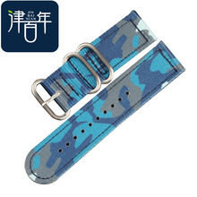 津百年尼龙编织帆布表带18 20 22MM精工华为GT2男黑绿防水表链 迷彩蓝+银环 20mm