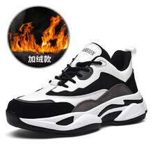 悍臣胖子男鞋夏季透气网面特大码真牛皮网红老爹鞋男士胖脚宽肥运动鞋加宽加肥中学生大号网鞋高脚背 9200黑灰-冬季棉鞋(夜间反光) 39