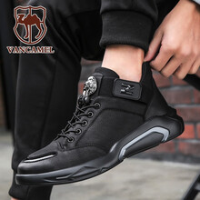 西域骆驼男鞋韩版潮流休闲鞋防滑运动板鞋子男新品防臭高帮皮鞋冬季加绒保暖棉鞋防水皮面雪地靴户外马丁靴男 黑色-单鞋款 41