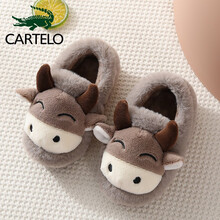 卡帝乐鳄鱼 儿童棉拖鞋男童女童棉鞋包跟舒适毛绒保暖家居萌牛拖鞋 1X33901933 棕色 30-31