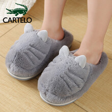 卡帝乐鳄鱼 儿童棉拖鞋男童女童软底舒适毛绒保暖家居拖鞋卡通虎猫绣花棉鞋子 1X33390755 深灰 20-21