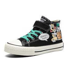 迪士尼Disney男童高帮帆布鞋2021新款潮流春夏季薄款透气儿童板鞋中童男孩潮鞋高档 1076黑色小孩子夏天穿的 25小孩子夏天穿的