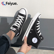 飞跃帆布鞋女高帮鞋子2021春夏ulzzang学生百搭休闲板鞋潮 黑色(女神选小一码,男神标准码) 36