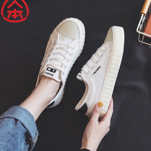 人本女鞋网红饼干鞋头2021年春季新款韩版时尚帆布鞋女学生休闲板鞋子 白色 女38