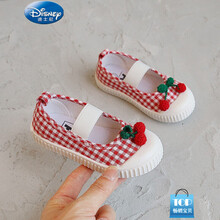 支持鴻星尔克/迪士尼线下商场同款女童帆布鞋幼儿园鞋儿童布鞋一脚蹬童鞋韩版学生板鞋中小童方口鞋 樱桃 13鞋内长13cm