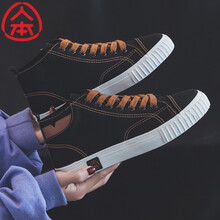 人本女鞋2021年春季新款韩版学生黑色高帮帆布鞋女休闲百搭小白鞋板鞋子 黑色升级款 女35