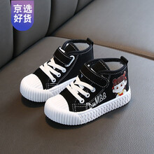Disney/迪士尼品牌同款2021秋季新款宝宝学步鞋儿童高帮帆布鞋男女童休闲饼干鞋学生鞋子 黑色 内长13.8cm 21码
