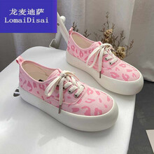 十几岁初中生高中生女生夏天穿的厚底帆布鞋女甜酷粉豹纹设计感小众馒头鞋夏季百搭休闲板鞋ins潮 粉豹纹 35