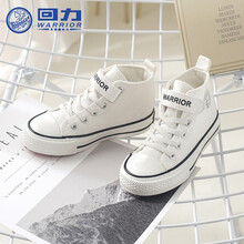 回力童鞋2021春季儿童高帮男童帆布鞋 便捷魔术贴学生布鞋纯色百搭男女鞋子 白色 32内长约20.5cm