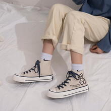 BEIER高帮帆布鞋女学生板鞋经典时尚球鞋ins潮流休闲鞋女 8919米色 38