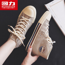 回力女鞋加绒高帮帆布鞋女2021春季新款休闲棉鞋男生韩版百搭情侣板鞋子 卡其色B195 36