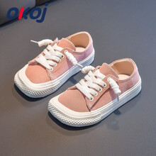 OKOJ 女童帆布鞋2021夏季新款单鞋中大童软底防滑布鞋儿童方头休闲百搭板鞋 粉色 32码/内长20.5cm