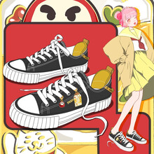 艾米与麦麦2021年夏季新款百搭低帮黑色帆布鞋女复古港味学生软妹板鞋个性时尚街头潮鞋 金运护法 37码 按平时尺码选择
