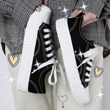 蓓尔饼干鞋韩版百搭休闲系带小白鞋女鞋学院风帆布鞋板鞋潮鞋 8508黑色 40