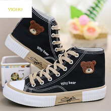 童装【春款上新】5-12岁儿童板鞋布鞋2021新款儿童高帮帆布鞋百搭中小学生运动鞋女孩鞋子流彗A 标GM-55黑色单款 37